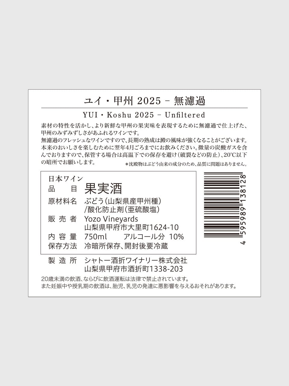 YUI・Koshu 2025 - Unfiltered | ユイ・甲州 2025 - 無濾過